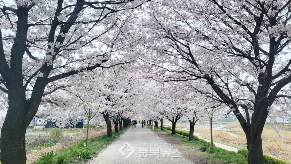 9일 음성군에 따르면 청미천을 따라 조성된 벚꽃길은 지역의 대표적인 벚꽃 나들이 명소로 꼽힌다.