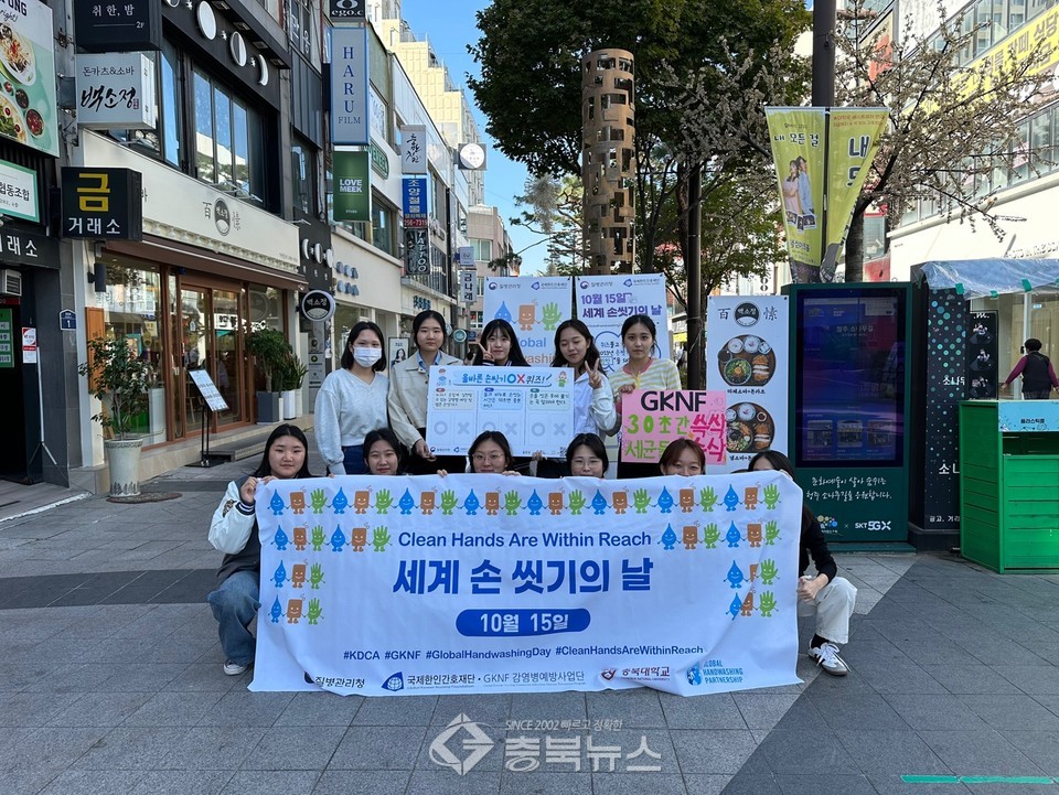 간호학과 GKNF 봉사단(황유진‧박서연‧백지예‧성가현‧안홍자‧윤혜주‧이나영‧이서영‧이선우‧이소진‧이유진‧전윤혜 2학년)은 감염병 예방을 위한 올바른 손씻기의 중요성에 대한 인식과 이해를 높이고자 다문화 센터 어린이들, 청주시민을 대상으로 다양한 캠페인을 펼쳤다.