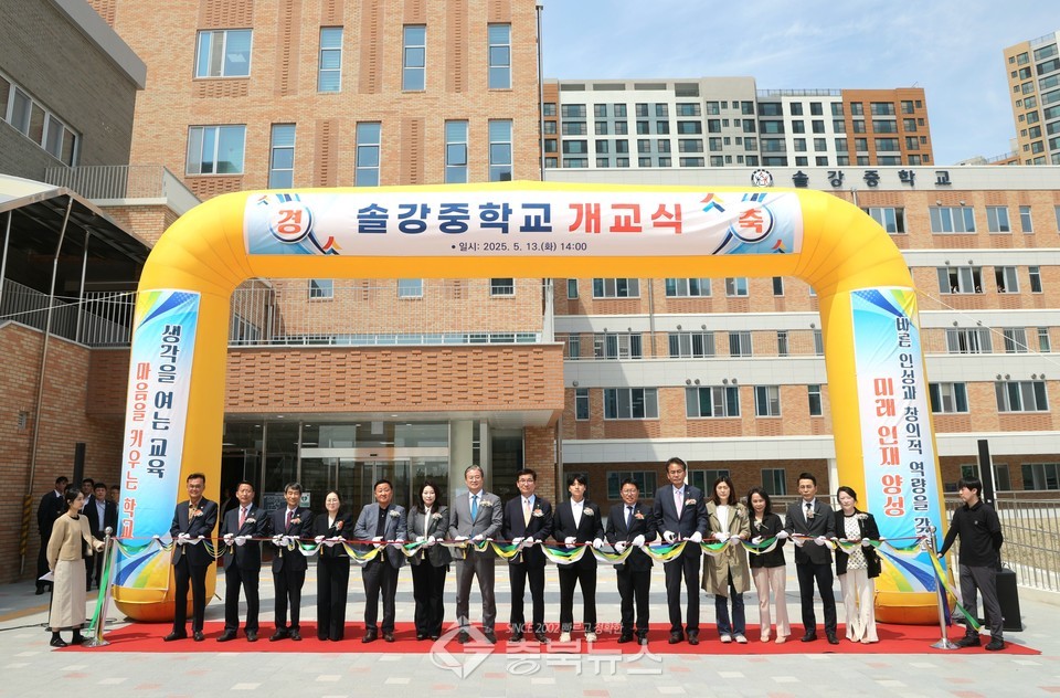 (충북뉴스 소진섭 기자) 청주시 오송읍 솔강중학교(교장 노재민)가 ‘바른 인성과 창의적 역량을 갖춘 미래 인재 양성’이라는 비전으로 13일 개교식을 가졌다.